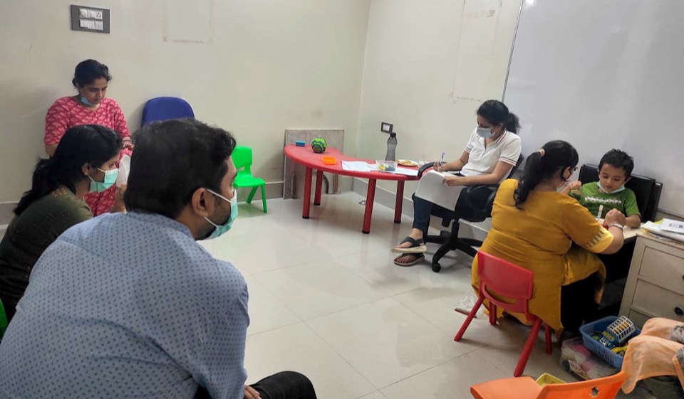 Once the child is settled and the therapy sessions are in flow, the parents are encouraged to share their observations to help the team to build more effective programmes. Regular feedback from parents and the team contributes in consistent progress monitoring.