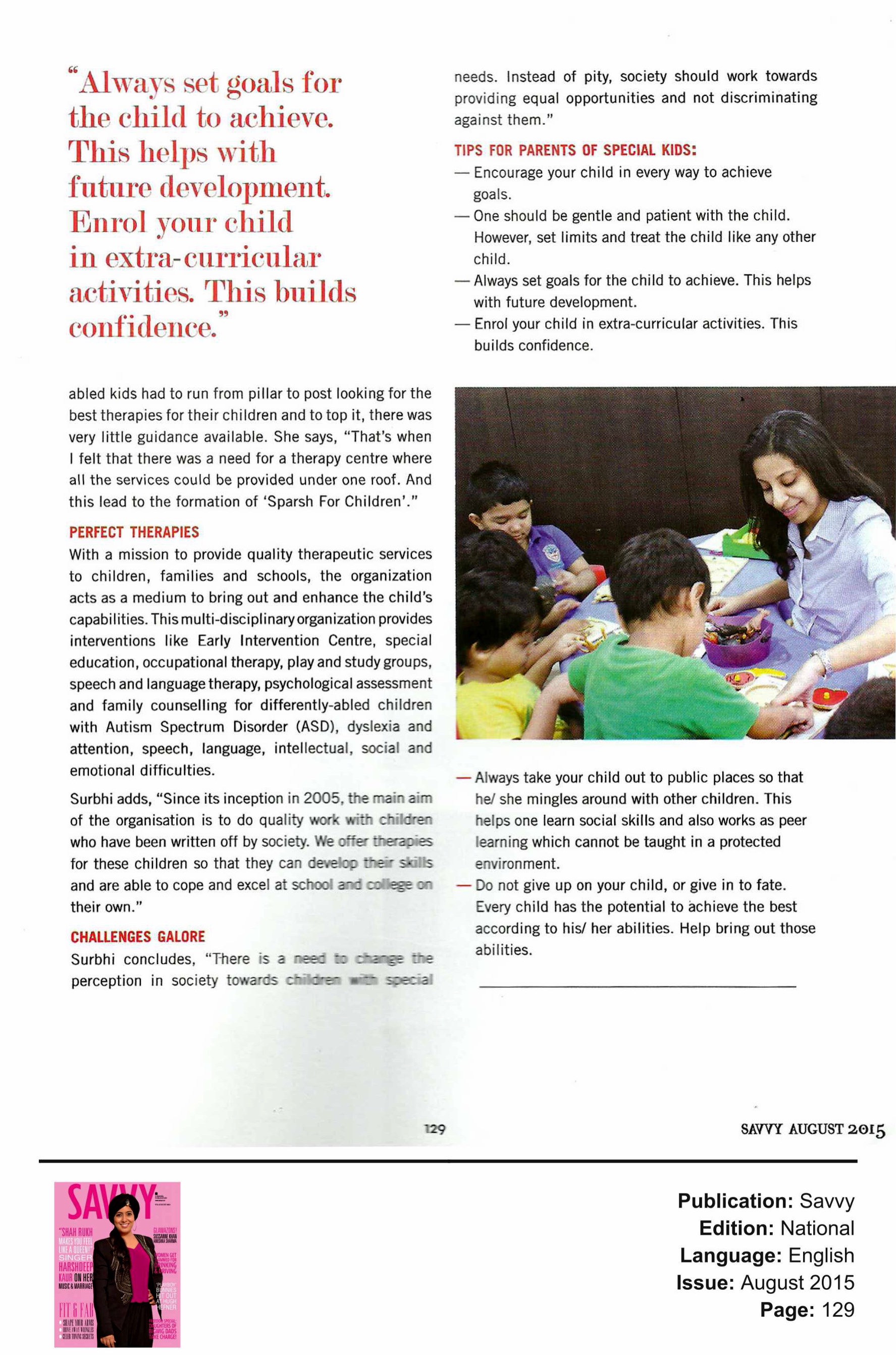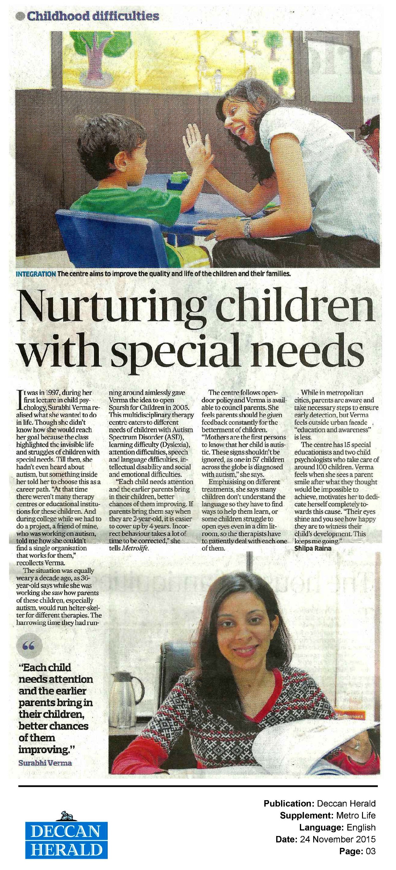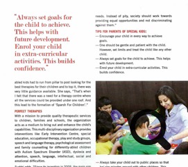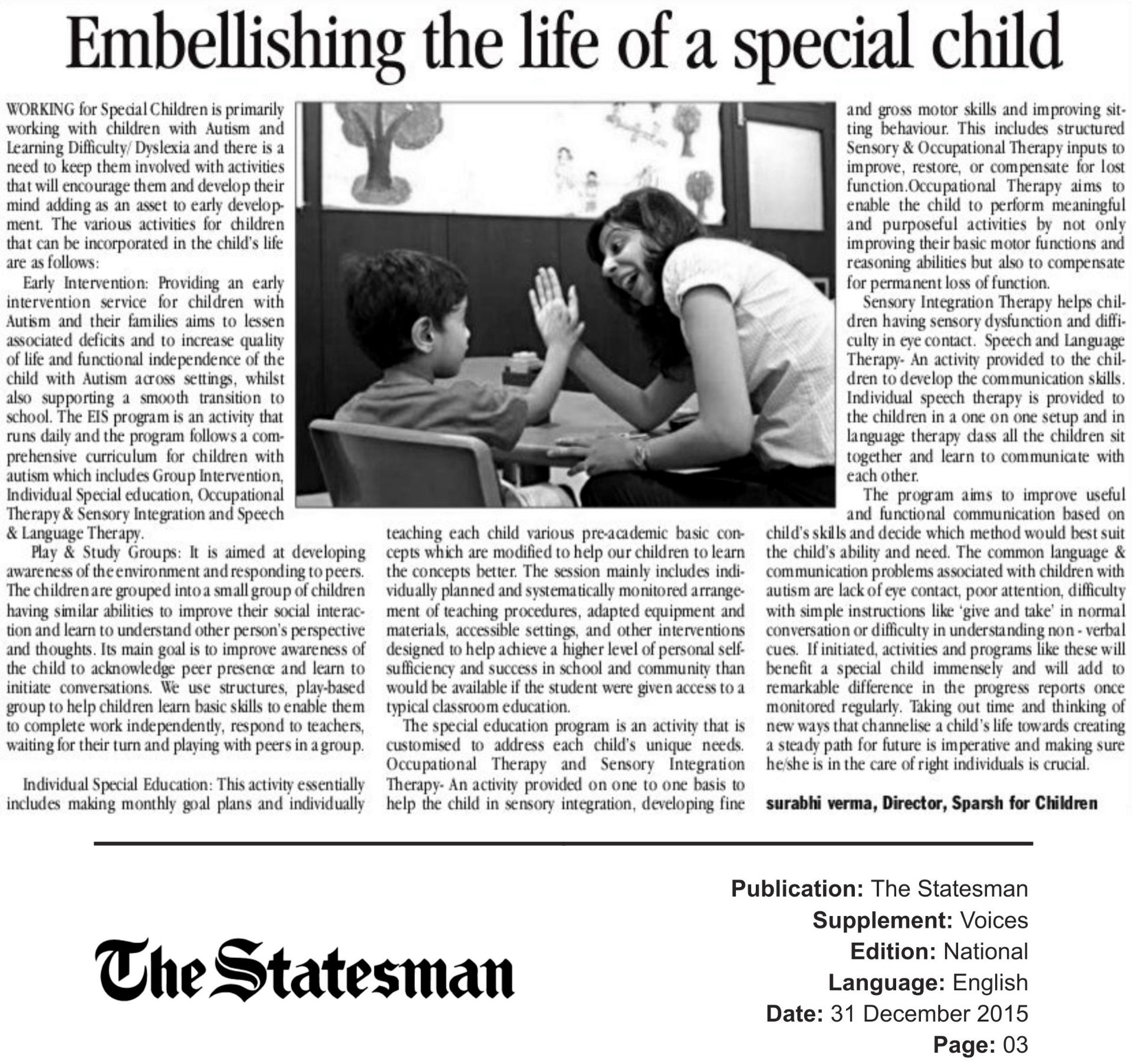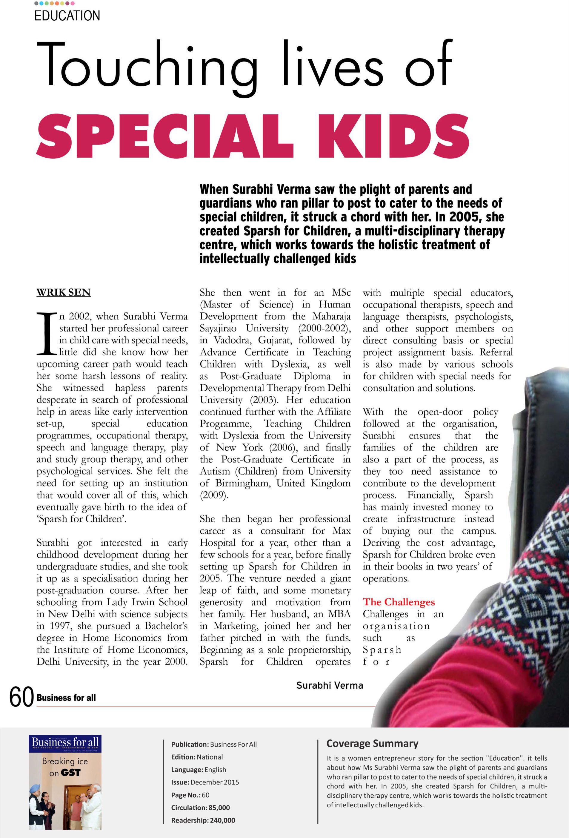 A collection of the founder’s thoughts recognised and covered in various media over the years. A ready reference of the body of work done by Sparsh for Children towards nurturing the capabilities of special needs children.