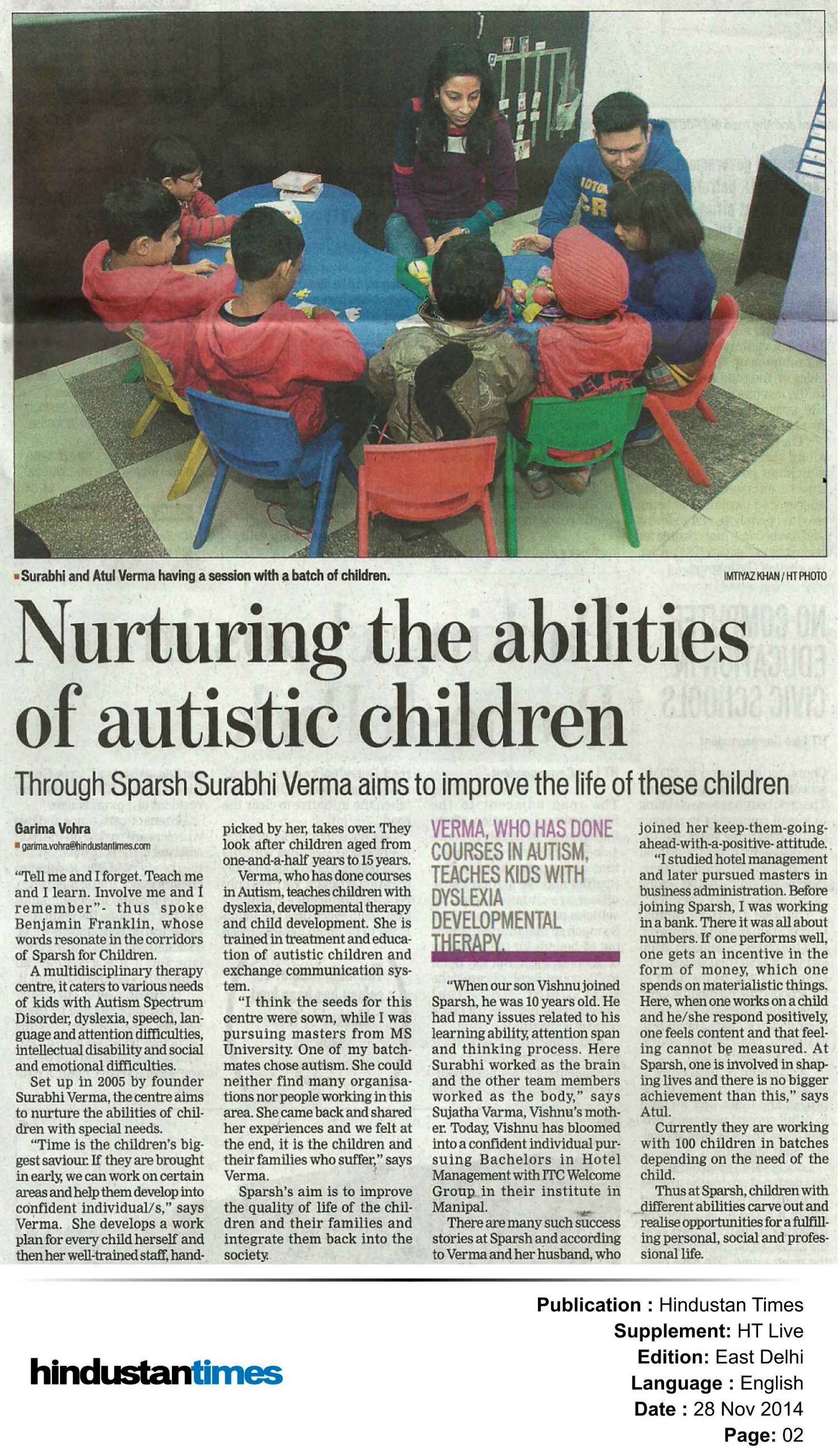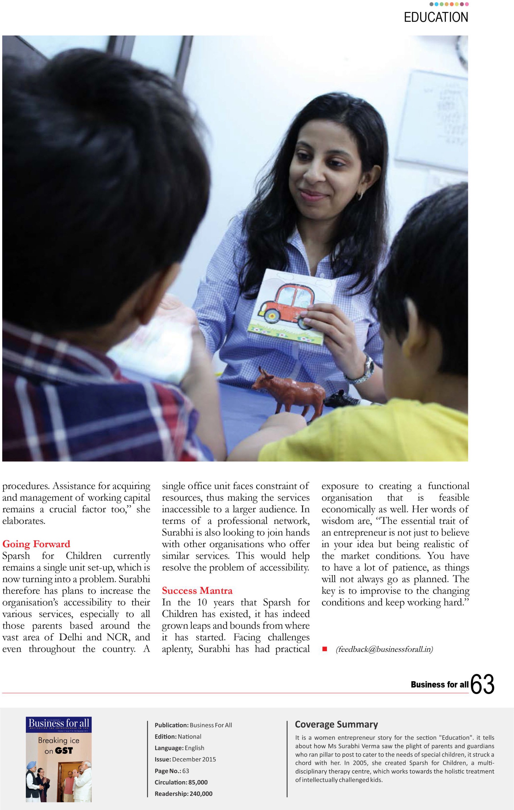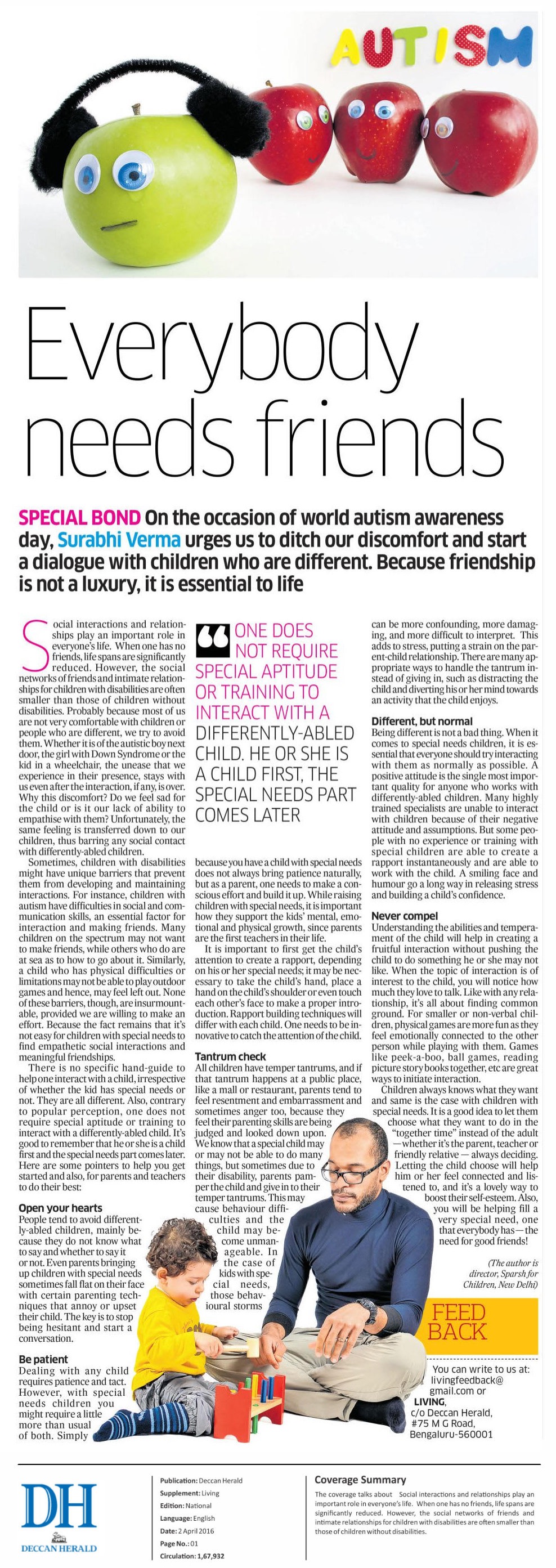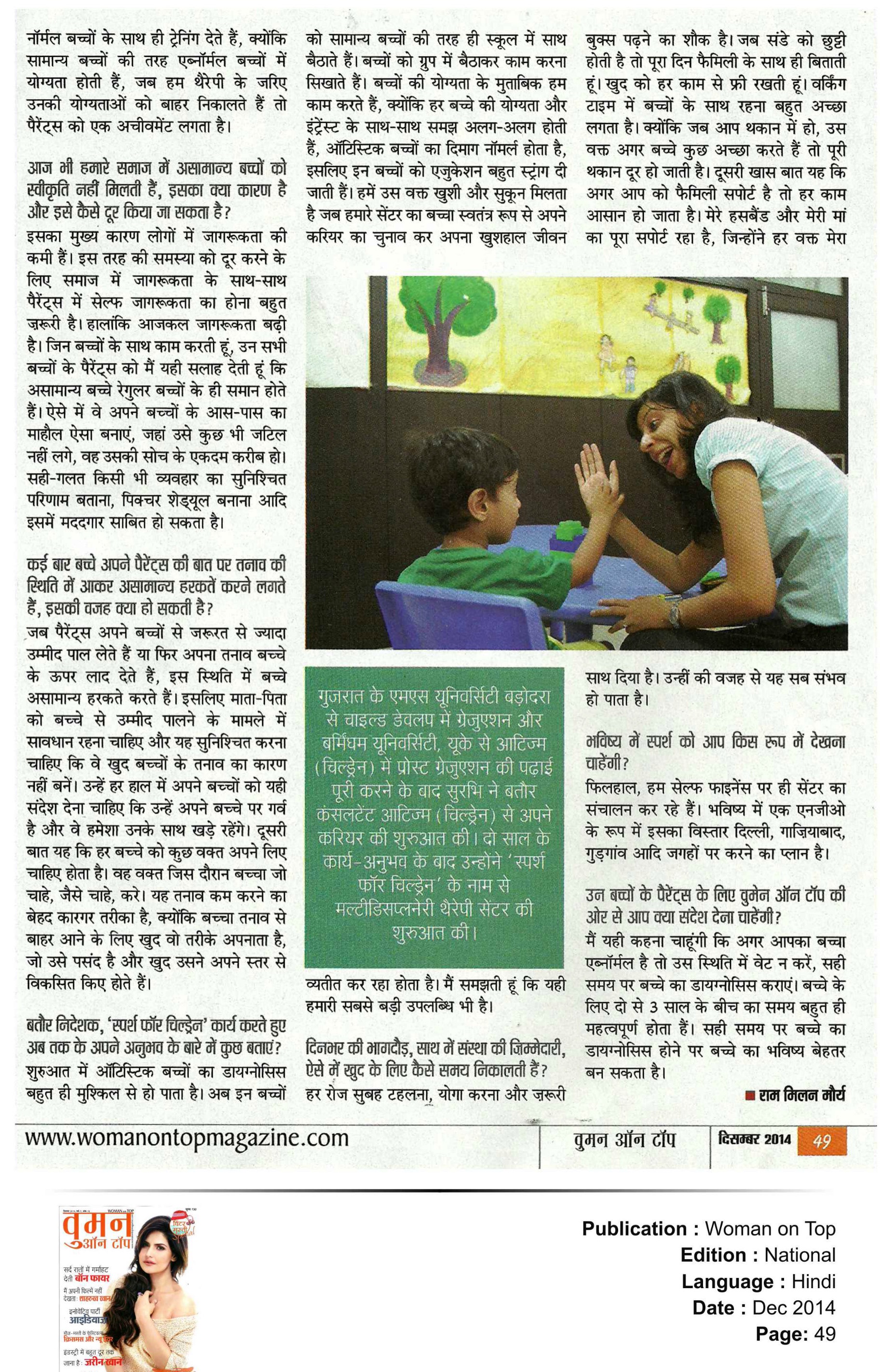 A collection of the founder’s thoughts recognised and covered in various media over the years. A ready reference of the body of work done by Sparsh for Children towards nurturing the capabilities of special needs children.