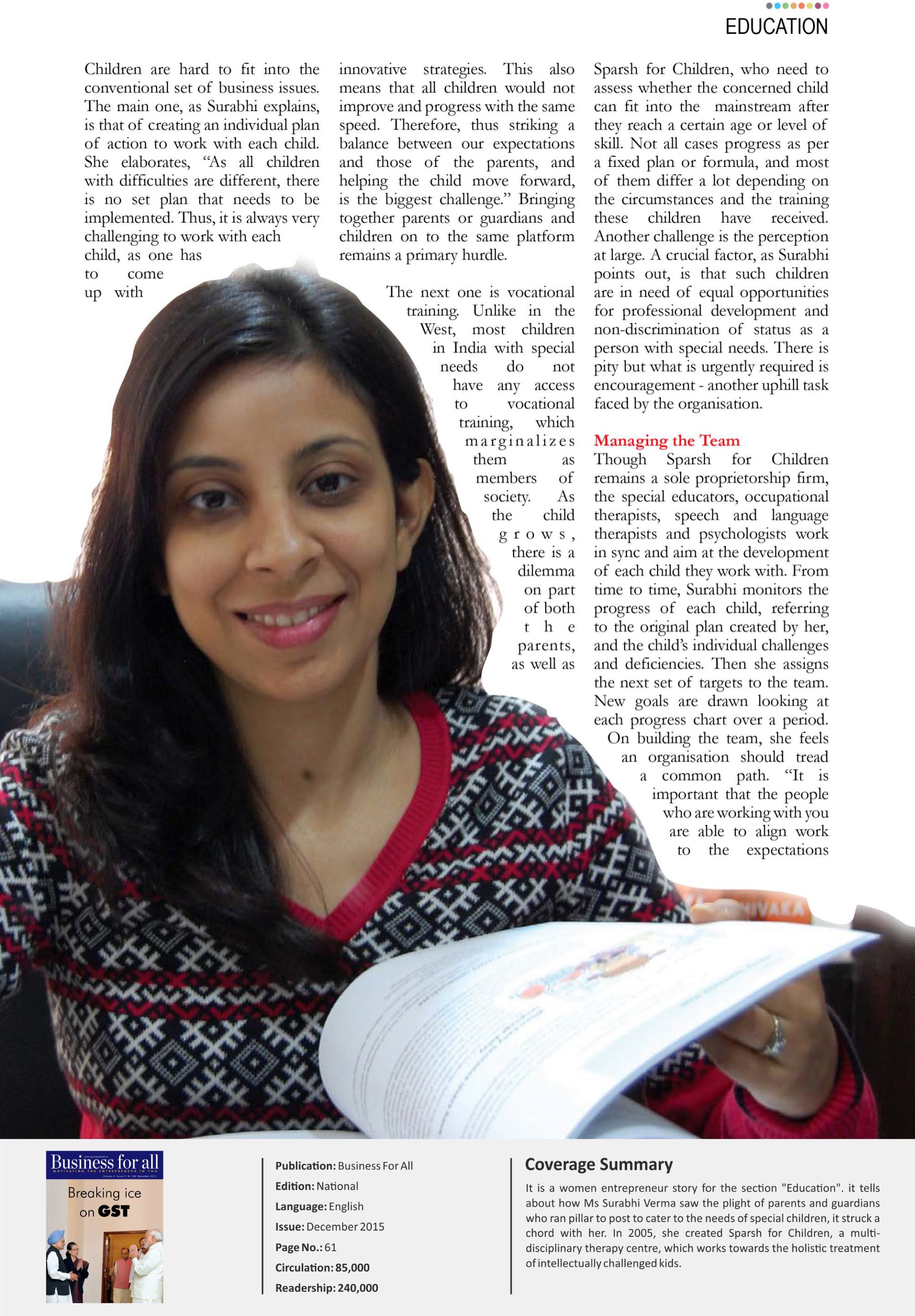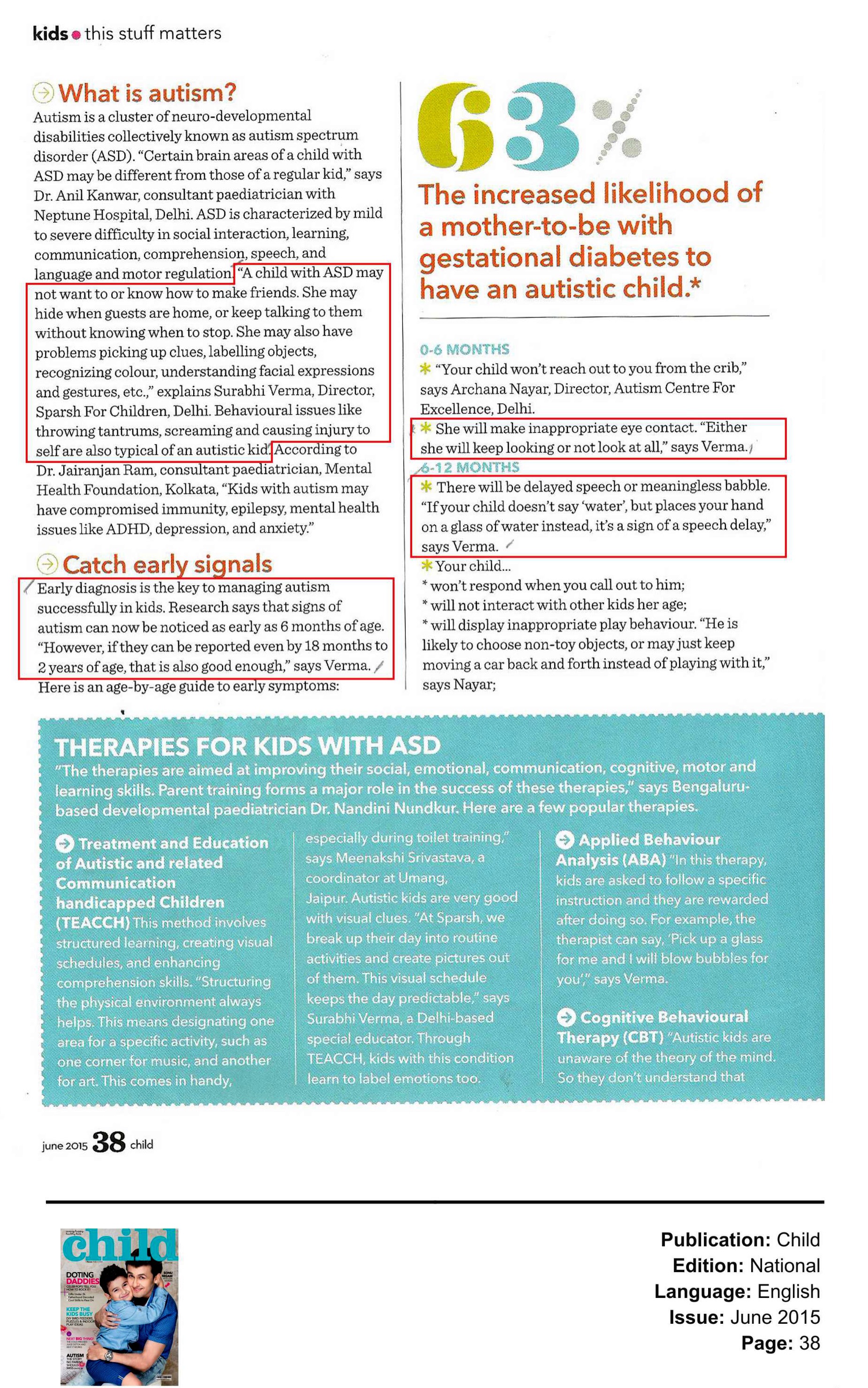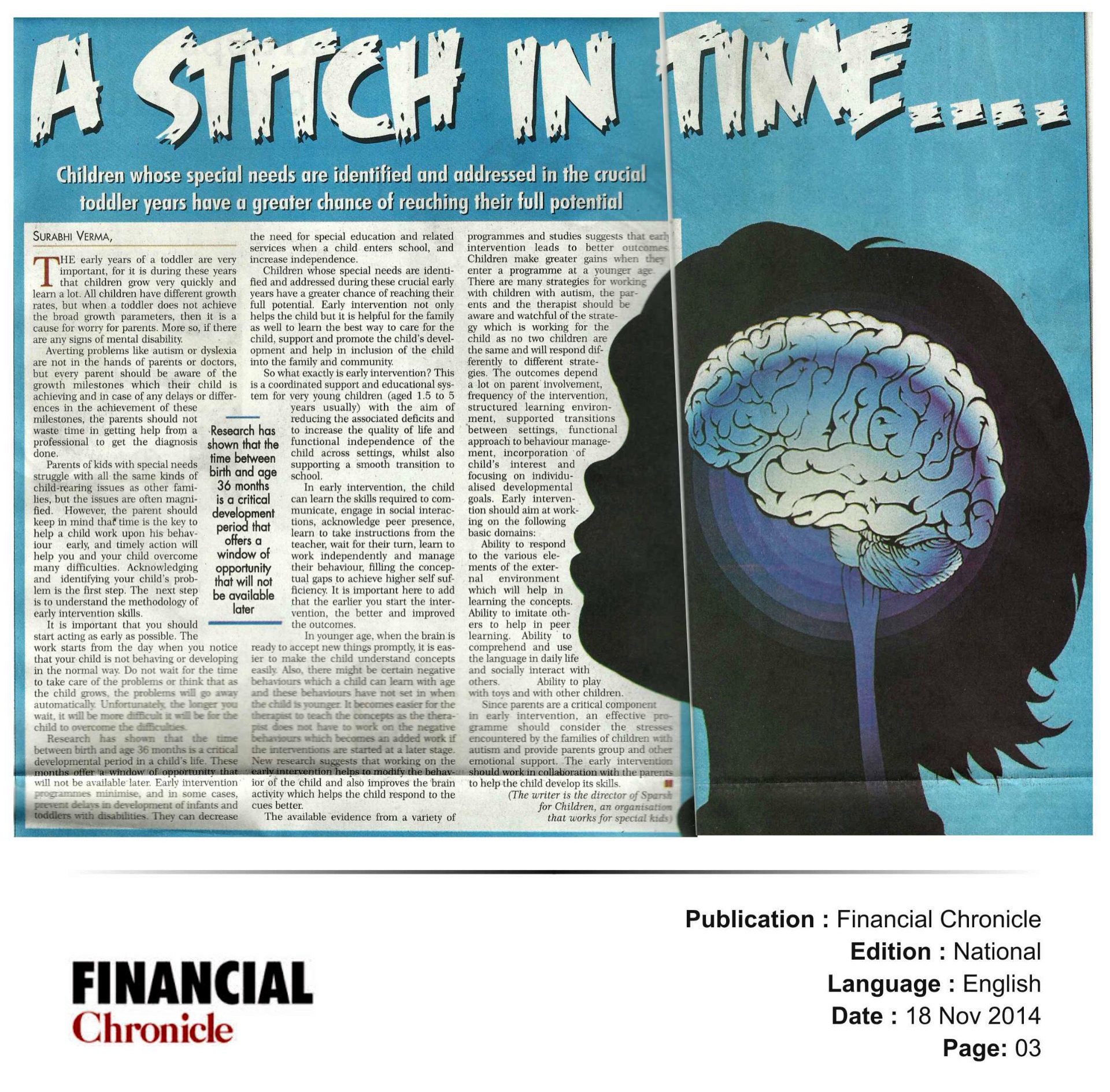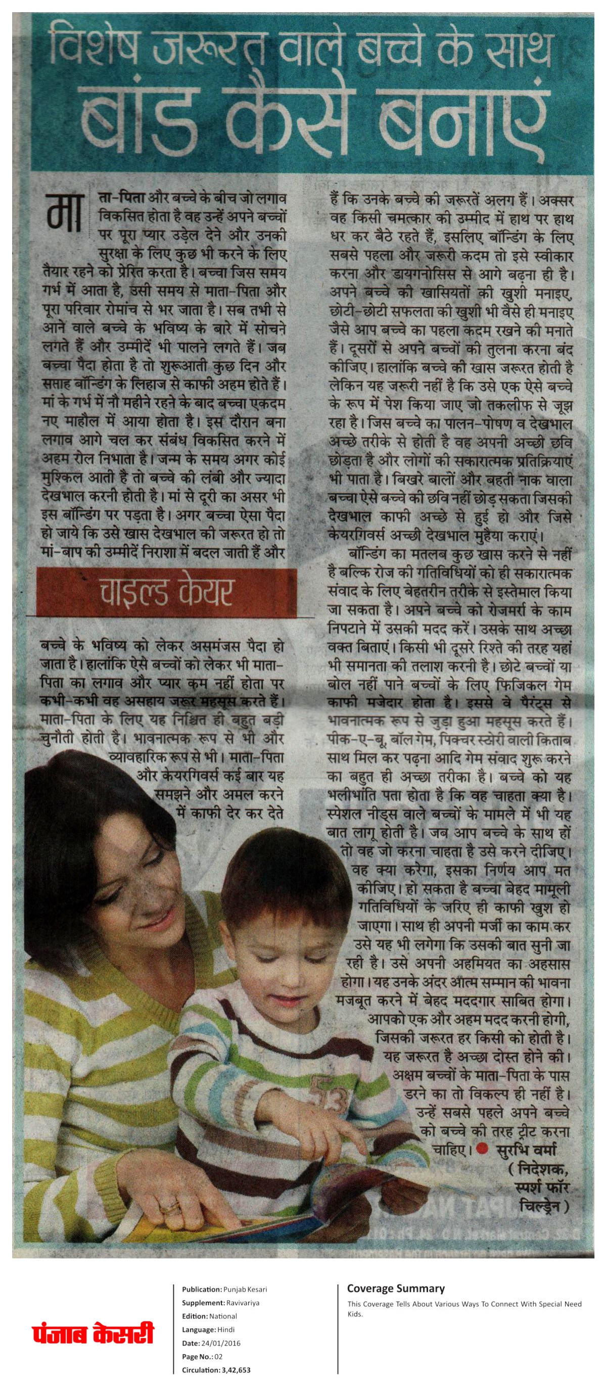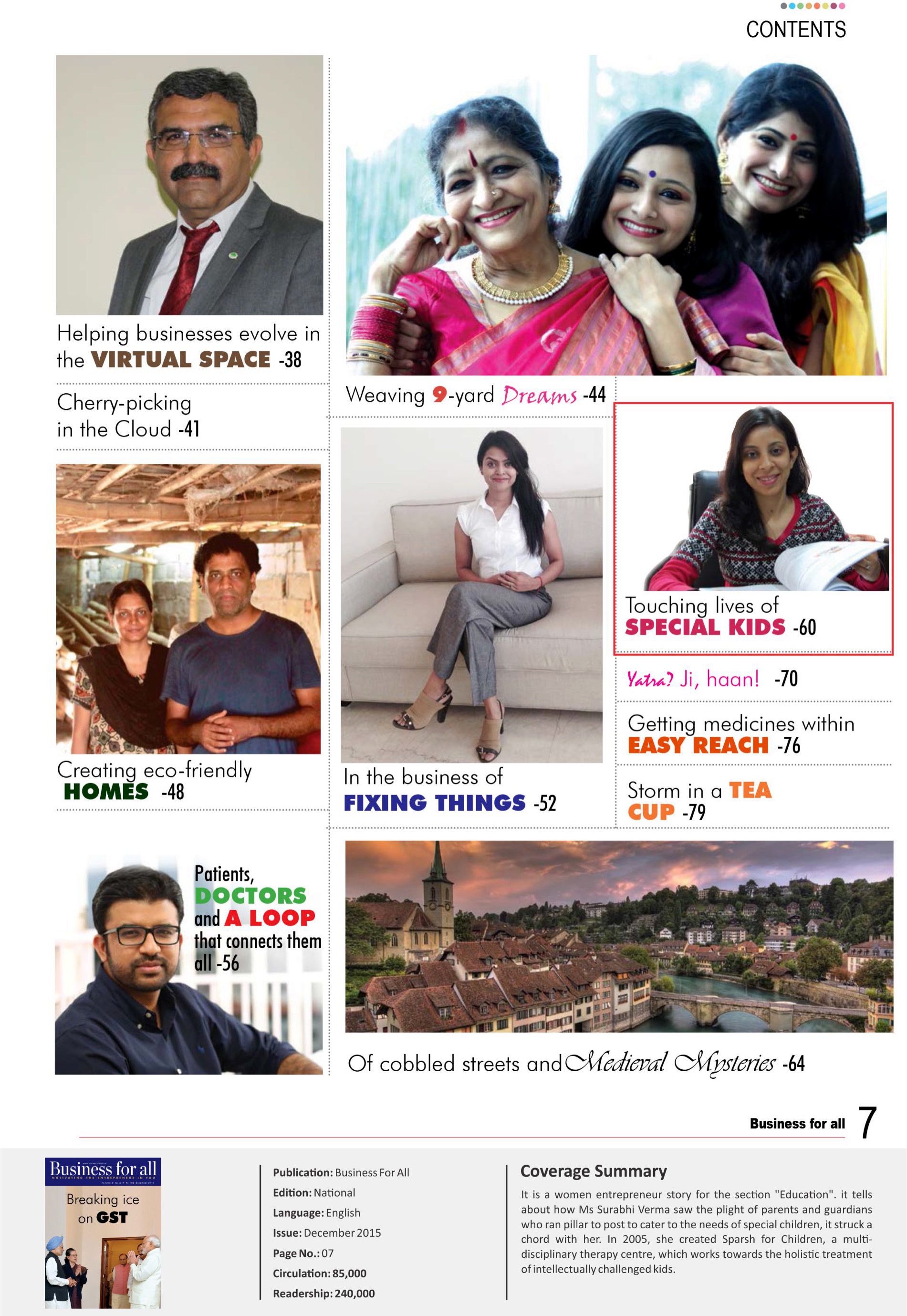 A collection of the founder’s thoughts recognised and covered in various media over the years. A ready reference of the body of work done by Sparsh for Children towards nurturing the capabilities of special needs children.