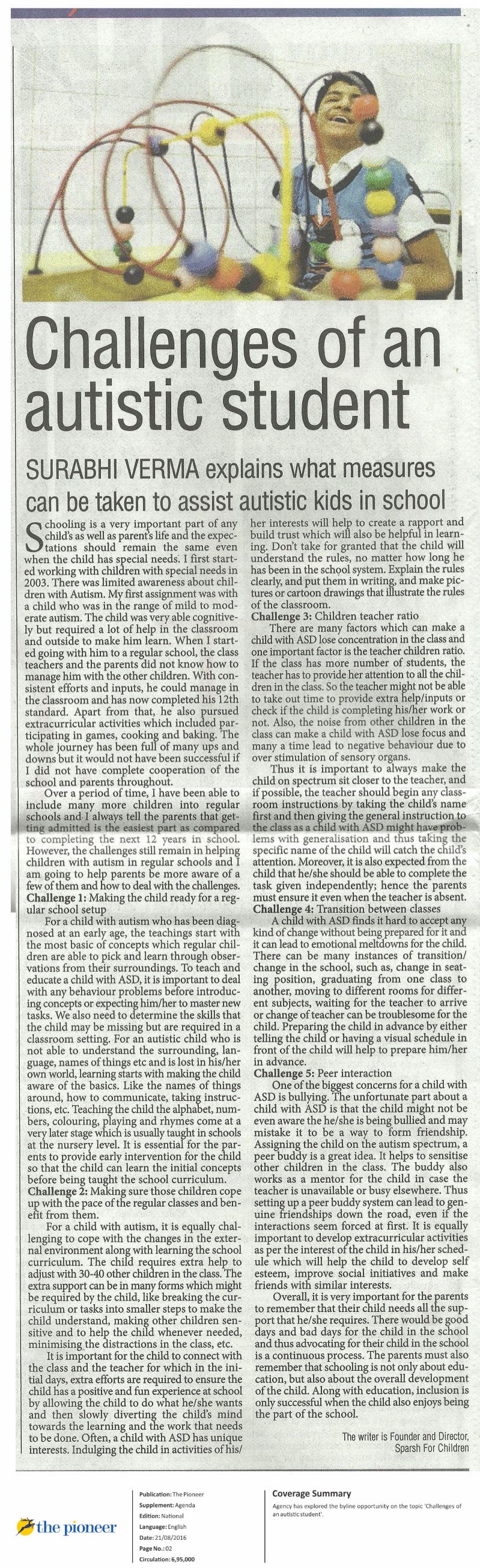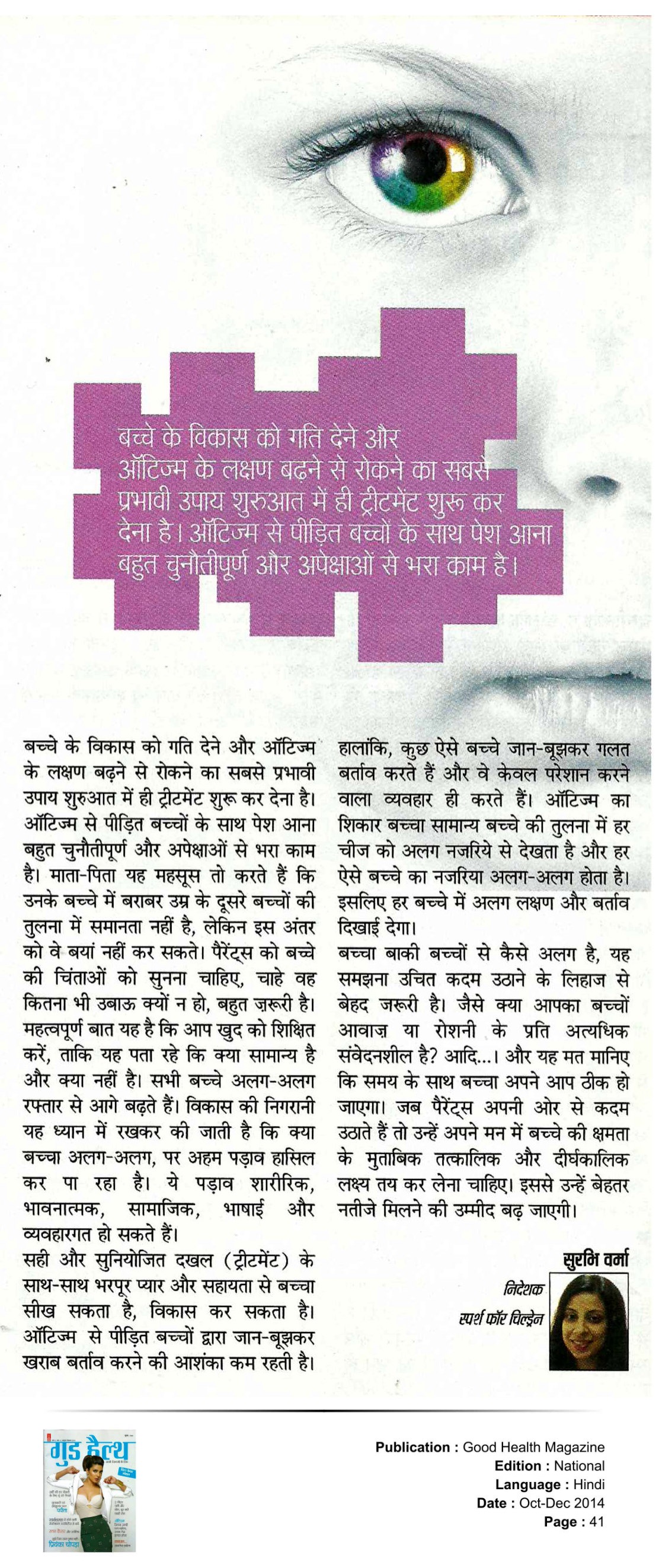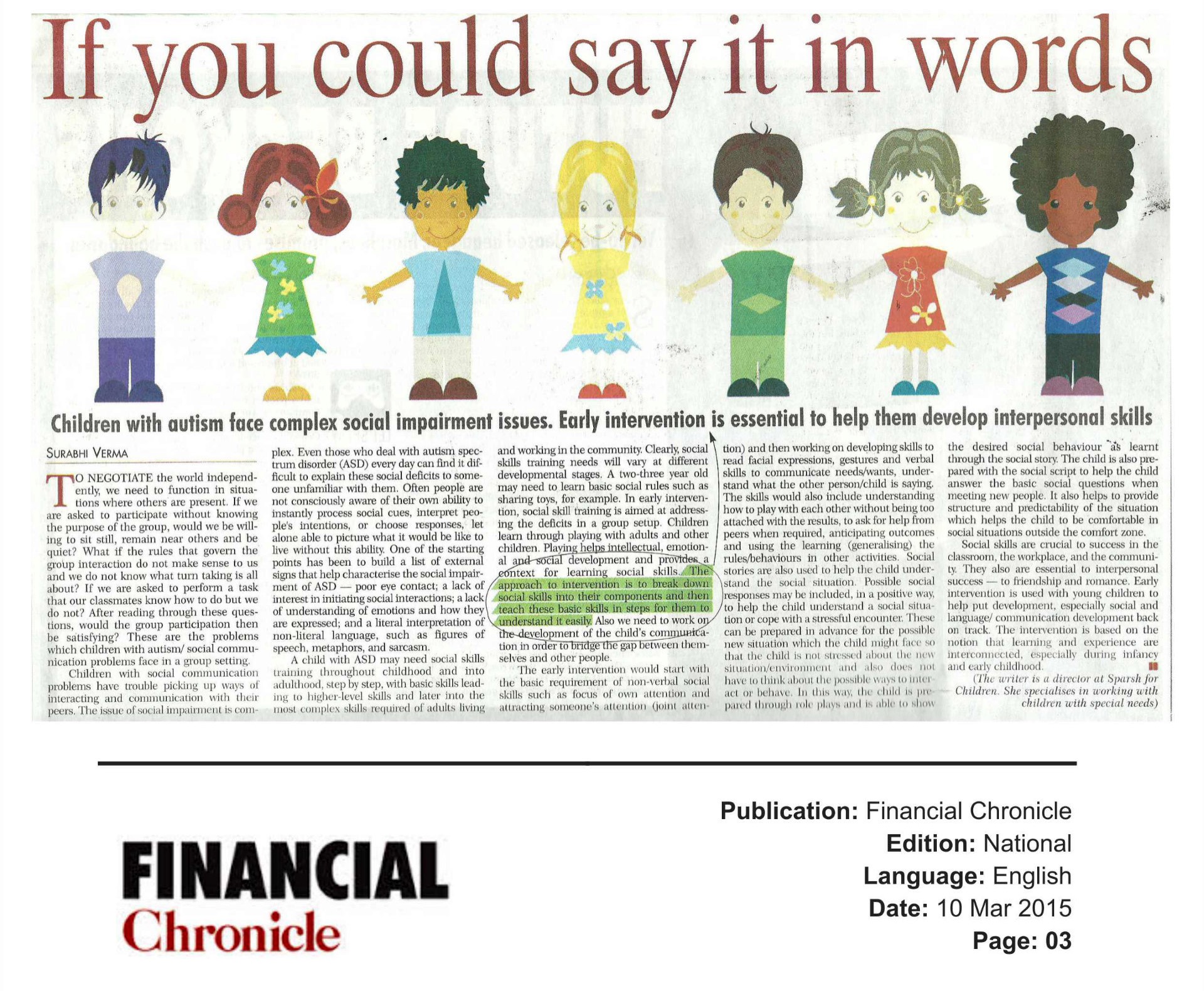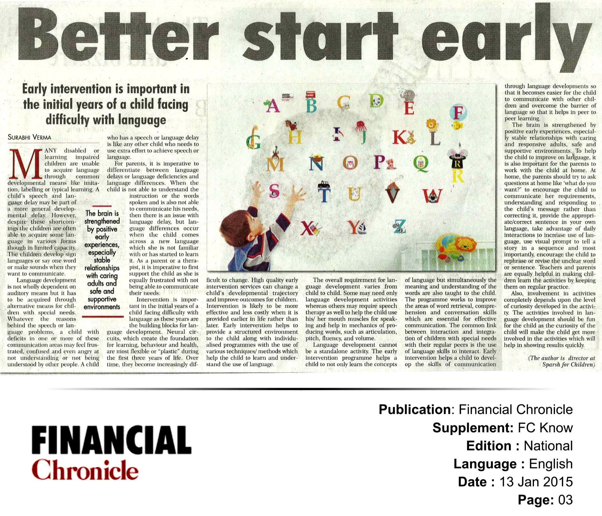 A collection of the founder’s thoughts recognised and covered in various media over the years. A ready reference of the body of work done by Sparsh for Children towards nurturing the capabilities of special needs children.